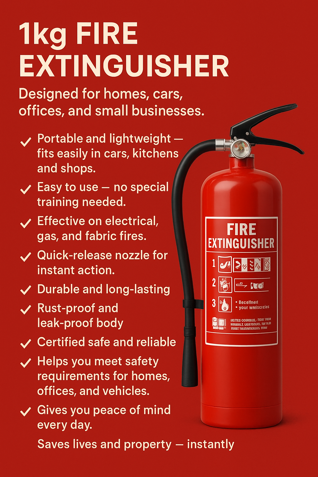 Get Your 1kg Fire Extinguisher Today — Because Every Second Counts.